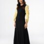 Embrace a sleek and sophisticated look with this maxi dress. The unique color blocking and thoughtful detailing add depth and style to a classic silhouette.